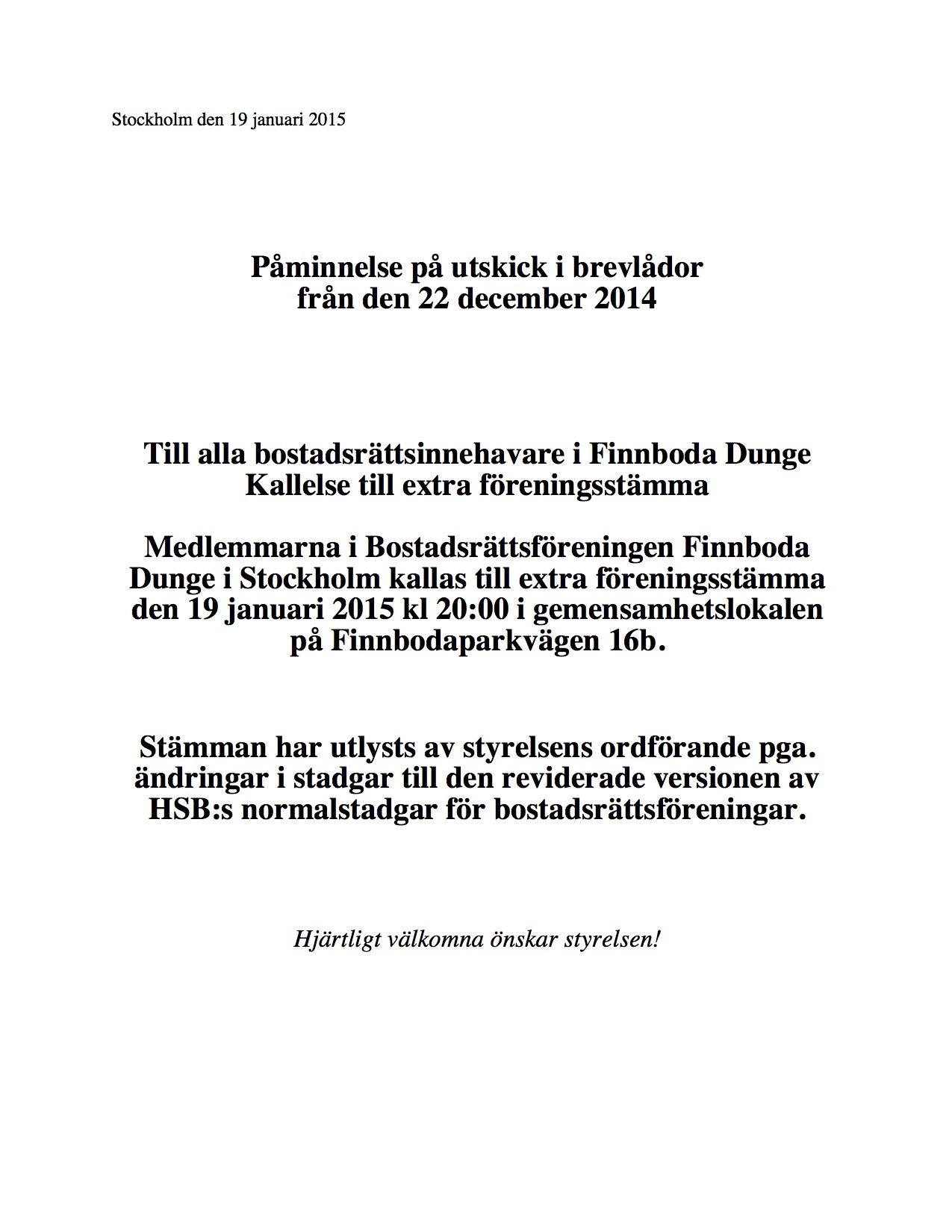 Extra Föreningsstämma Den 19 januari, 2015 Av finnbodadungei Uncategorized Klicka här för att läsa om förslagen till nya stadgar ”nytt förslag” Dela detta: Dela på X (Öppnas i ett nytt fönster) X Dela på Facebook (Öppnas i ett nytt fönster) Facebook Gilla Laddar in …